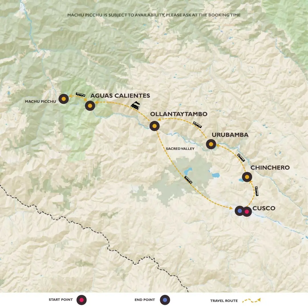 Enjoy an unforgettable private tour of the Sacred Valley and Machu Picchu. Begin with a transfer from your hotel in Cusco, taking you through breathtaking Andean landscapes. Explore the living culture of Chinchero through its textiles and marvel at the agricultural terraces of Moray. This journey guarantees an immersive cultural experience before heading to the iconic Living Inca Village of Ollantaytambo.