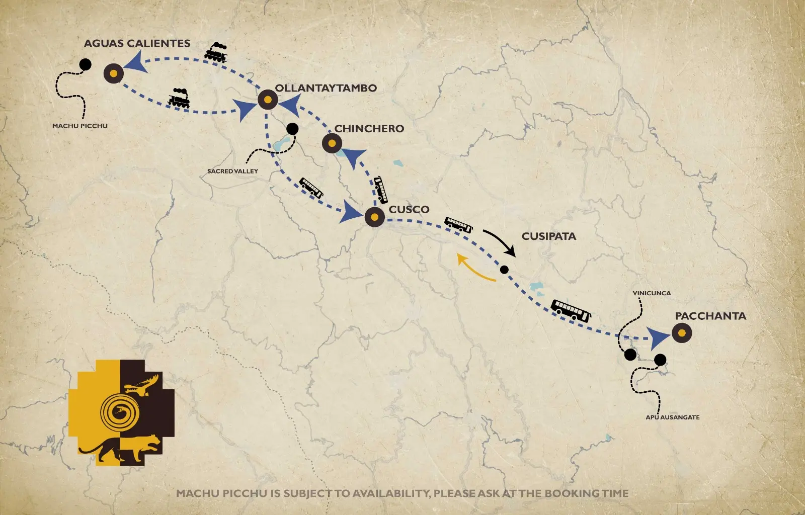 After visiting Machu Picchu, we will take the bus back to Aguas Calientes. We will have time for lunch, and in the afternoon, we will take the train from Aguas Calientes to Ollantaytambo, where our Pumadventures team will meet us and transfer you directly to your hotel in Cusco. The total travel time from Aguas Calientes to Cusco is approximately 4 hours. If you wish to climb Huayna Picchu or Machu Picchu Mountain, please inform us at the time of booking, as a separate permit is required.